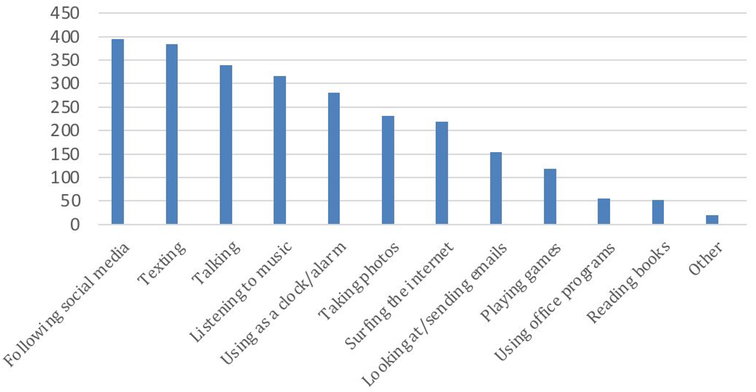 Figure 1. The distribution of participants' responses to the question "For what purposes do you use your phone?"